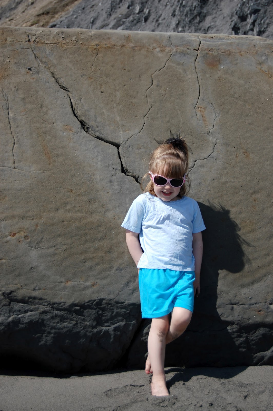 Here is Abby a year ago in front of the same cracked rock as seen above. You can't actually get to it now with all the other rocks that have fallen off the cliff.